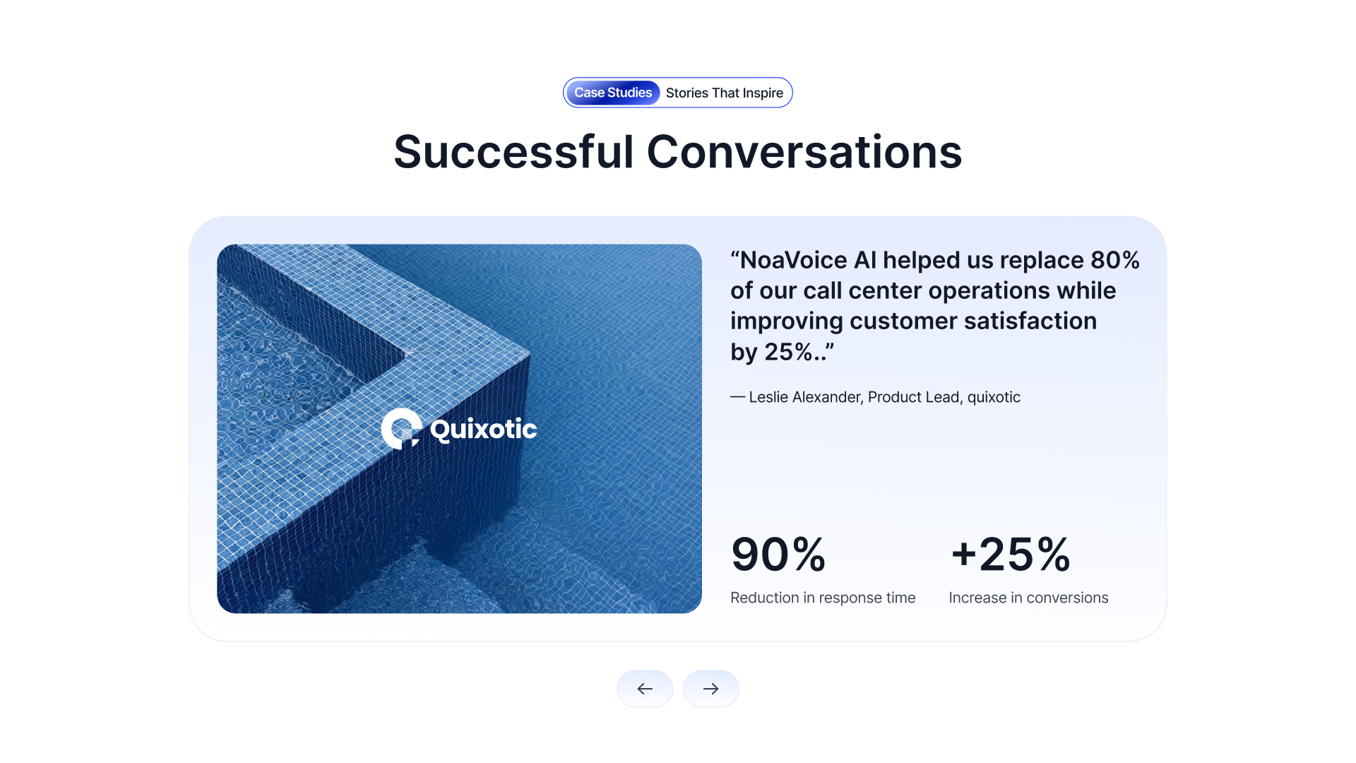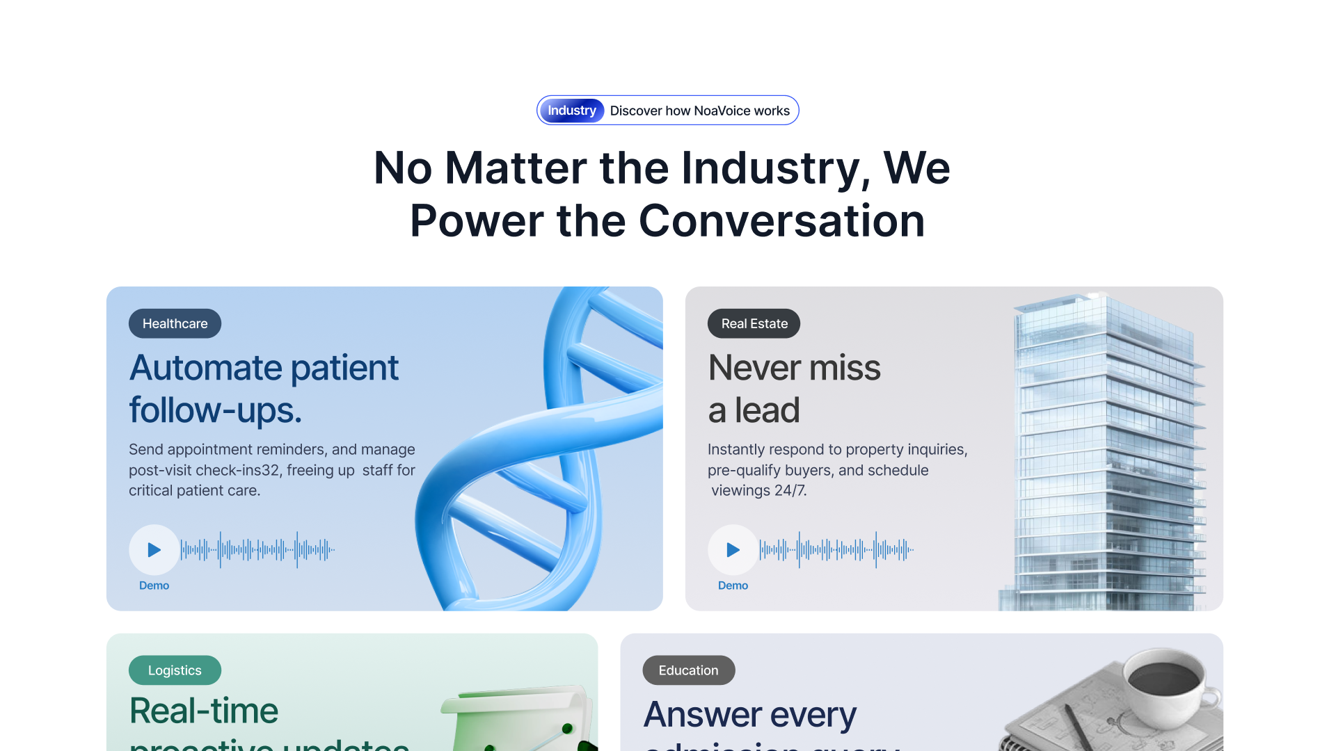 The new landing page transformed NoaVoice AI's digital presence from a basic product page into a compelling brand experience. The result is a platform that looks and feels enterprise-grade, establishing immediate trust with B2B decision-makers.